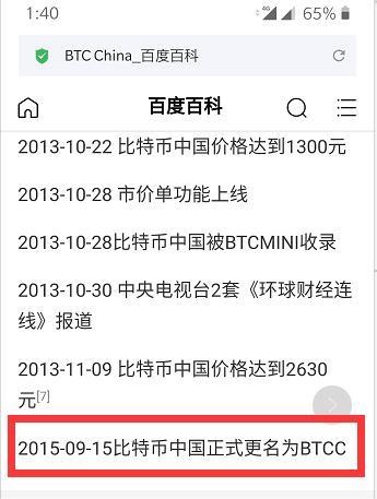 我们从百度百科里也能查到比特币中国更名为BTCC的消息,如下图: