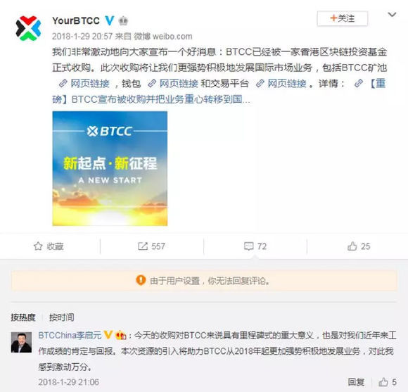 (注:图片来自BTCChina官方微博在2019年1月29日的公告)