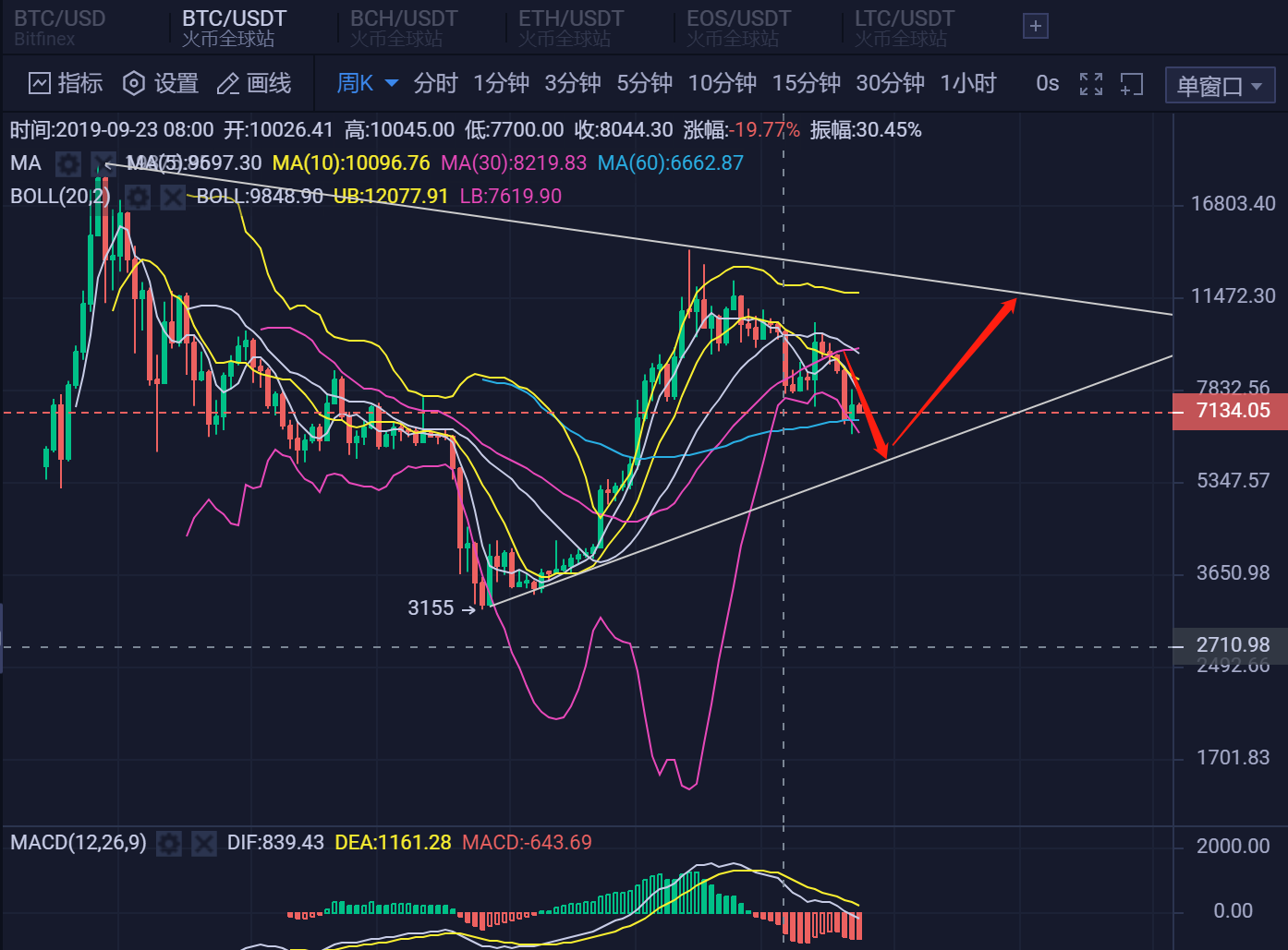 小结:今天一大早BTC就开始下跌,其余主流也是不同幅度下跌,虽然下跌幅度不大但是含义远大于这200点。因为跌破了前期震荡区间。再向下就是破7000了,又要来到深水区了,那么这次需要考虑的是在6500形成双底,还是继续向下?