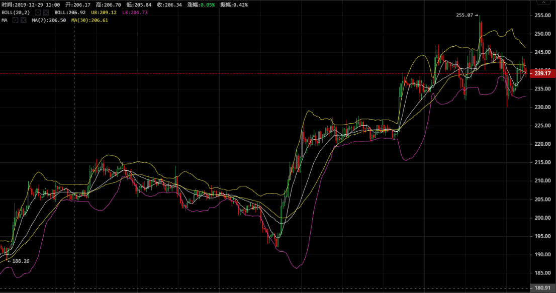 BCH:239上方找高点空,和大饼一样。止损放大一点,仓位轻。