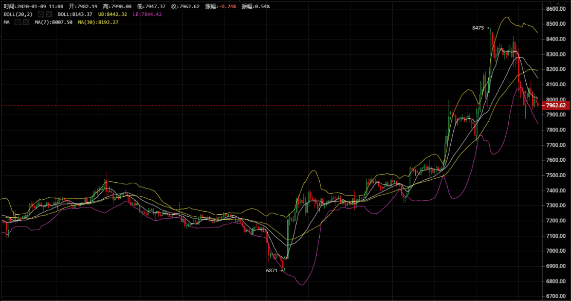 最近美国和伊朗的冲突搅动了全球的金融市场。石油和黄金大涨,数字货币市场也迎来一波快速上涨,并且是在弱市中急转身。舆论认为美伊冲突导致资金买入避险推动了上涨的行情。那么是否如此暂且不论,就来看看此次冲突的情况。最新消息是伊朗对美军基地袭击,双方对损失各执一词,但伊朗表示这是对美国的报复而不是要升级成为战争,说白了真的死磕,伊朗也没有资本,但总要做出中东反美先锋的样子,形象不能倒。而美国在大选年也不会轻开战端。所以爆发大规模地区冲突的可能不大,但变数是美国如何报复,更重要的是市场怎么理解和解读。说白了就是庄家有没有准备借这个题目。技术上来说短期上涨过快肯定要防止修正指标。不要真的下跌了最后只得到一句,获利了结下跌很正常。市场的走势最终是市场给出答案,并且是以市场的逻辑。