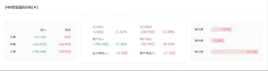 ETH:以太今天资金流入-7.67亿,今天早上开盘后大盘出现集体下跌的情况,以太也不例外,今天下跌回踩MA20后,目前价格稍有所反弹,后期在MA20以上震荡,对于以太建议放量突破286再进场,支撑位236,压力位285。