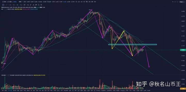 柚子币过去一轮的大幅回调已经是完美预演,接下去的走势,重点关注3.7~3.95的强压,长时间的不反攻,预期演化则会如上图,破3.0