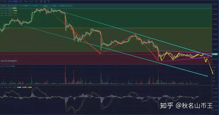 目前价格反弹至3.61,已经距离3.7~3.95越来越近,行情上行压力逐步加强,同时关注其小时图走势,行情运行三角震荡,昨日辣条最终向下跌破,带动比特币一同破新低,以其作为指引性,柚子有望走出新低的走势,在向下破三角之后,交易上,可以适当小止损埋伏短空,抓取破位走势。昨日的压力区间依旧不变。