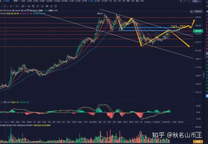 即便在所有主流币中,以太坊表现强势,整体还是处于下跌通道之中,行情想要持续前期的牛市,需要走出243~250的压力带。但不可忽视的是,若有机会强势的上行,主板的号角大概率还是要吹响,在没有最终选择方向之前,散户不能左右市场,此刻最佳的还是等待庄的下一步动作,再行动。所谓空仓看戏,勿做庄落刀前砧板上的肉。