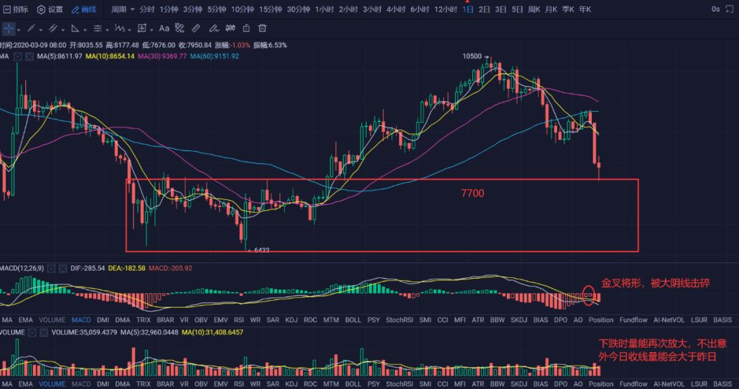 再回到加密货币市场本身的运行逻辑上,此次BTC从10500高位最低跌至7700下方存在多骨诺米牌效应,庄家高位砸盘—市场内高杠杆和合约用户爆仓—市场资金恐慌性出逃—反弹无量回落—再次引起恐慌性情绪,环环相扣导致加密货币市场崩溃。