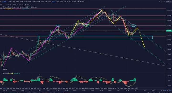 特意留了0303期的走势图,运行至今,价格完美按照过去的推演运行,眼下已经跌破8200~8500区间,并且已经非常接近震荡下跌通道支撑,价格的波段低点,大概率已经是眼前价格附近。