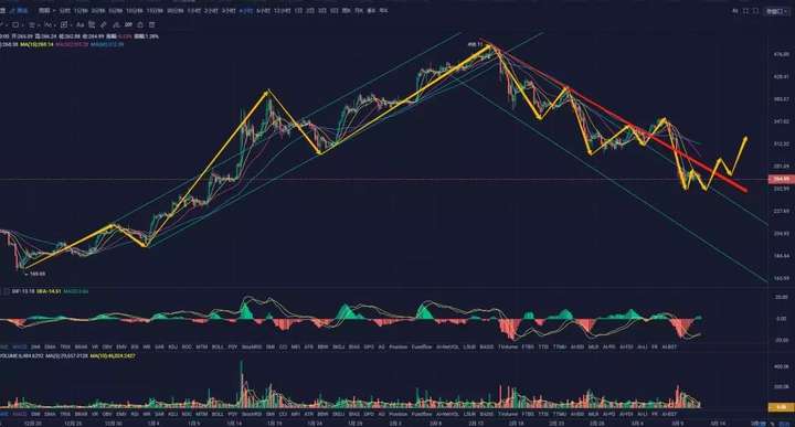 个人在253.5附近,已经入场5成现货,剩余仓分两批挂单区间:233~228、210~205.