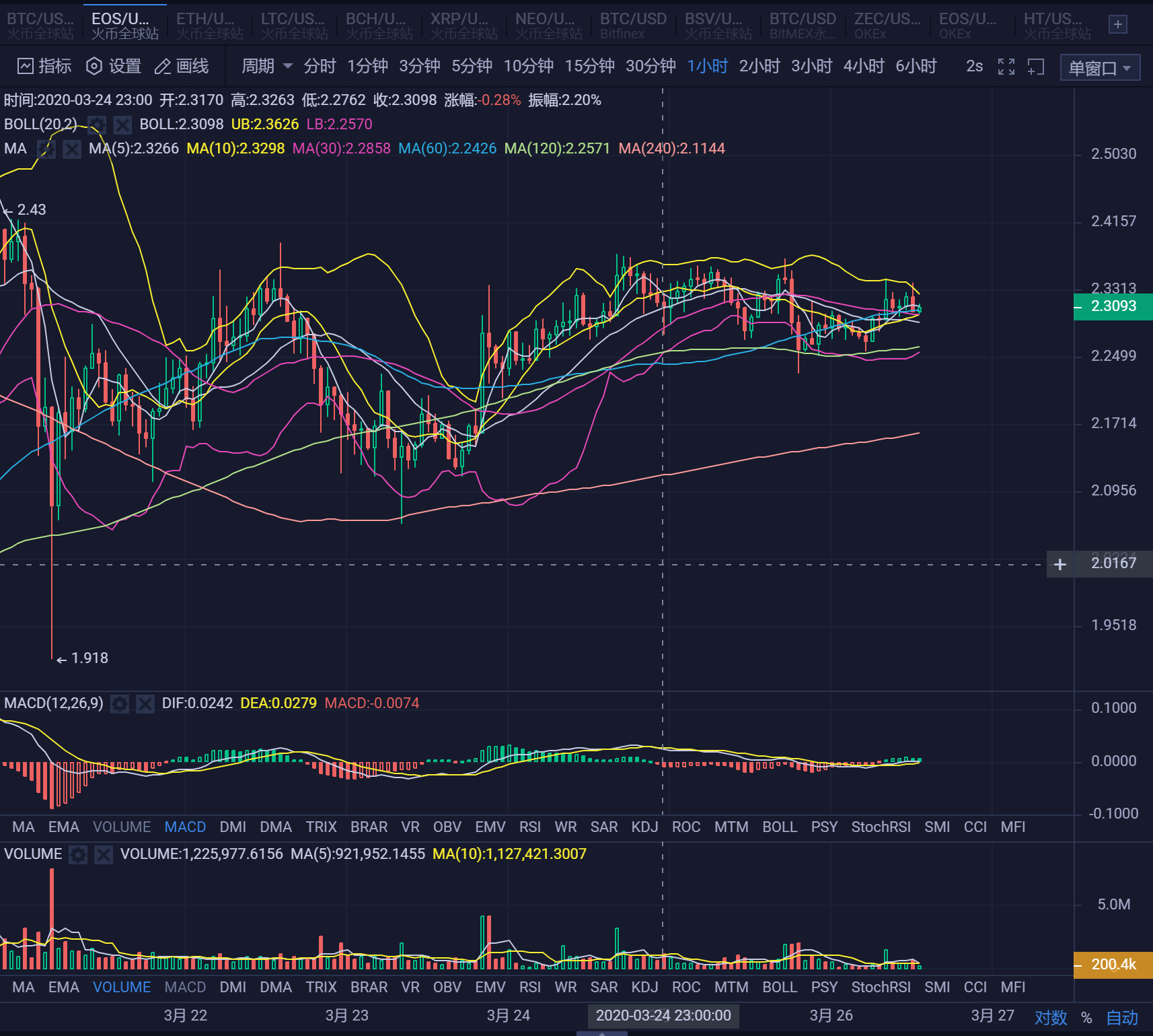 2.32空,支撑2.22,2.1。要做多的,建议靠近支撑操作。