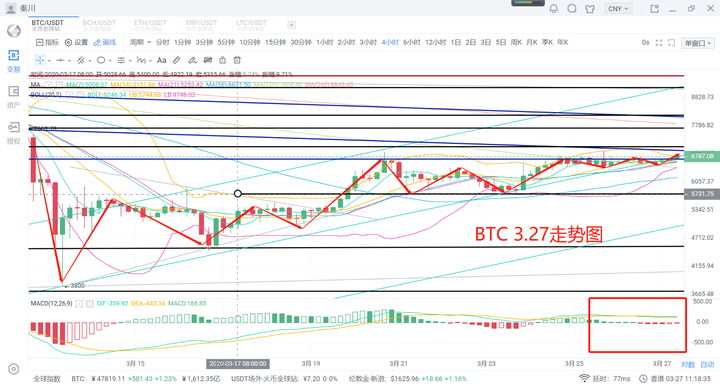 秦川说币20.3.27行情分析 比特币破位6700关键位企稳后市