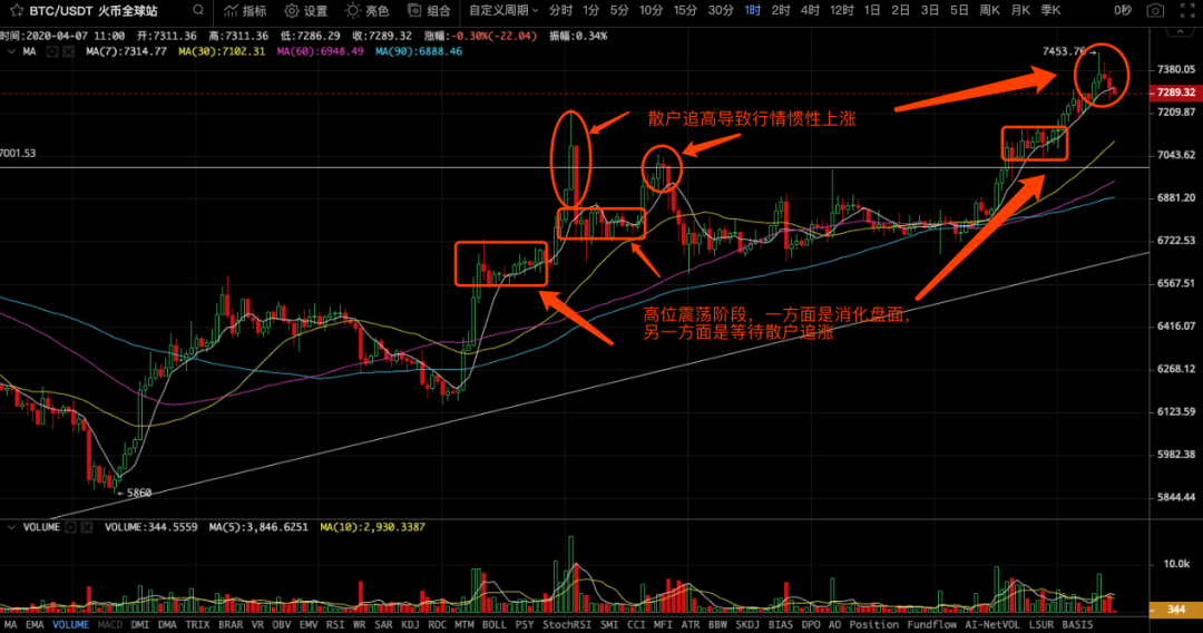 BTC一日间,从6750美金反弹至7400美金,ETH更是从142美金涨至176美金,涨幅高达23%。而在这之前的4月2日至4月6日,大盘则是一直维持在6600-7000美金区间整理走势。面对剧烈的行情突变,我们需要有应对之策,而不是在行情来临时拍断大腿,甚至是逆势而为,破罐子破摔。