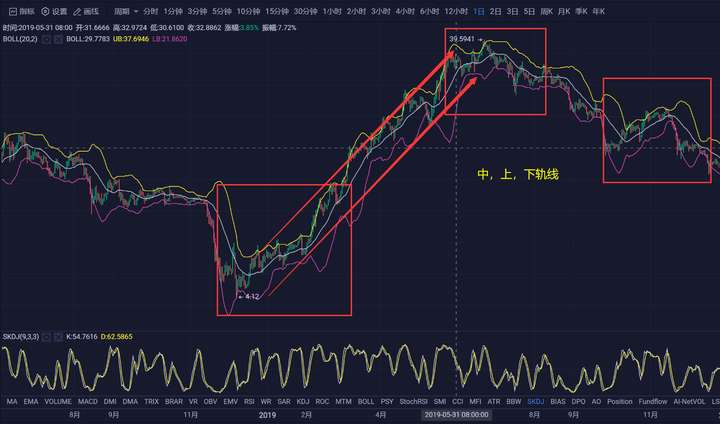 3·一般而言,当价格在布林线的中轨线上方运行时,表明市场处于强势趋势;当市场价格在布林线的中轨线下方运行时,表明市场处于弱势趋势。