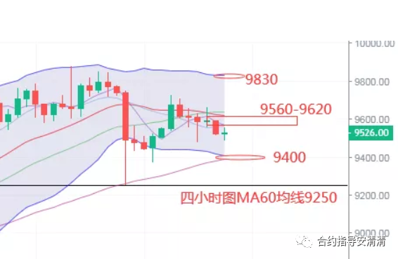 建议9560-9620附近轻仓空单进场,激进建议9800-9850附近进场,目标9450-9350-9250-9200,破位继续持有;