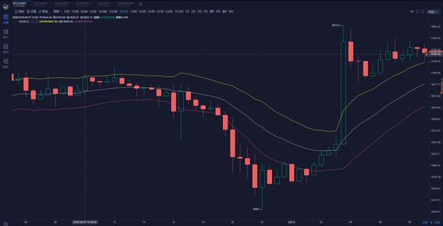 行情分析:BTC自10299美元的滑落之后反弹无非就是ETH带动,币王终是币王,周末行情BTC还是带动市场完成这波下跌!昨日触及下方9400后开启反弹,早间最高点触及9812,反弹位置正是笔者预想的日线中轨位置,但日线图仍在平稳发展,布林带未有开口的迹象;4小时级别图中,布林带出现大包之后收口运行,MA5、MA10等短线级别均线目前都处于回撤趋势,目前死叉有极大可能继续发散,MACD目前为死叉趋势,但未发量,KDJ指标在强弱分界线试探,但是敏感线回撤至50线下方,大有回撤之意,MTM同样走出小幅卖盘趋势。结合目前盘面来看,今日早盘行情有可能是一个震荡下跌走势。