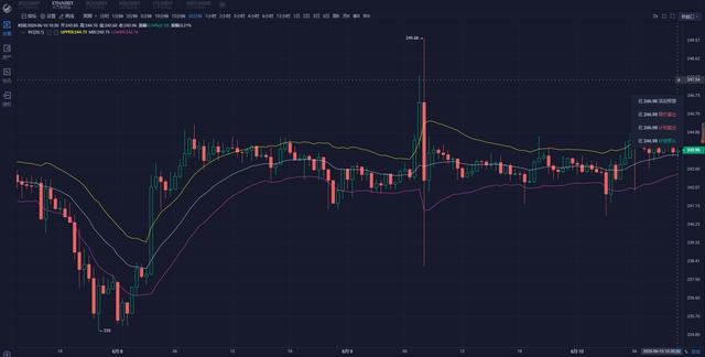 ETH:今天以太坊资金流入为1.3亿美元左右,早盘联动大饼插针后拉回243,4小时图上来看,MACD走出金叉,布林带开口变小,中轨与上轨稍向上扬,MA5均线与MA10均线形成金叉向上形态,整体来看,目前的走势依然是区间内小幅震荡,根据近期的多空双方的表现来看,日内还需谨慎操作,注意多空双方的突然发力,防止出现大的盘变。走势与昨天没多大变化,观点也一样,大概率是修复行情,不破253不用急,支撑位235,压力位250。