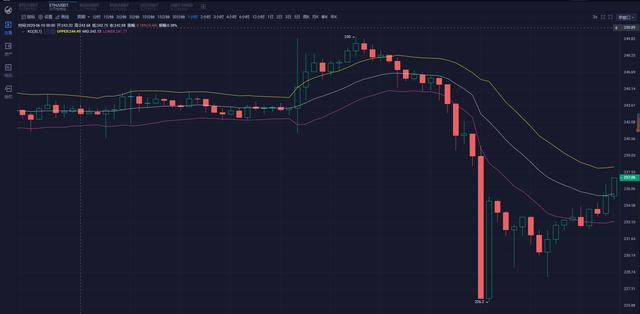 BCH:太子也是随大饼下跌,最近几个交易日的平衡被打破,如果把减半后的210到280看做一个震荡的箱体,那么往下还有20块的空间,对应大饼也基本到8700的位置。日线MACD终于红柱出现。中短期均线被击穿。4小时看,受大饼影响,日内延续下行走势后,在多次试探231,然后反弹上行,但在243这一个位置有较大的压制,布林带开口向下,操作建议高空为主,上方阻力关注243美元,下方支撑关注231美元。