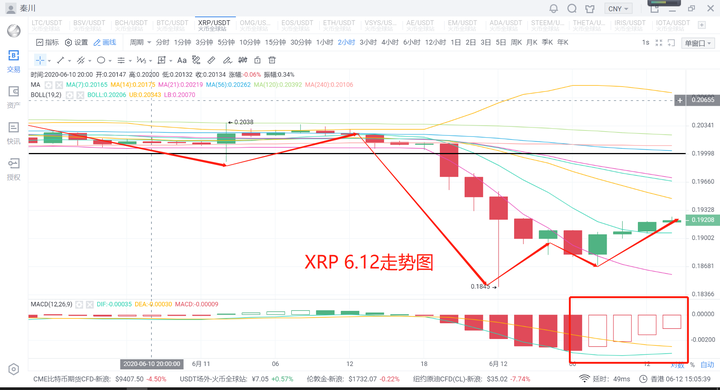 瑞波说过了盘中幅度不大的时候就不要着急了,耐心等待。那么昨日对于瑞波倒是试算了,错过了 高空的最佳点位,眼下就不说太多了,耐心等待行情重回0.197附近再度进场。