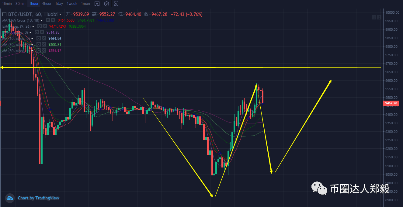 郑毅:BTC白盘一直在9500附近震荡,晚间压力位如若不破看向空头