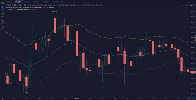 以太坊下行至225一线附近,可轻仓进场多单,止损223下方,控制好风险,可以博取反弹,目标上看230-232一线。