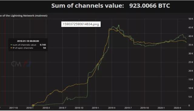 这是相对来讲,笔者认为颗星的一种路线,即,比特币在“数字黄金”与“数字现金”之间,做了一个平衡。在这种路径下,闪电网络将会是实现此种猜想的重中之重,毕竟想要把1M区块的比特币用起来,单单依靠主链的体验肯定是完全不行,链下的闪电网络才是打开“使用”这道门的金钥匙。闪电网络发展至今接近3年的时间,在2019年初因为闪电网络火炬大火特火了一把,此后进入了“销声匿迹”模式,在过去一年里并没有取得太多进展,整个网络锁定的BTC依旧不足1千,远不及人们对其预期。