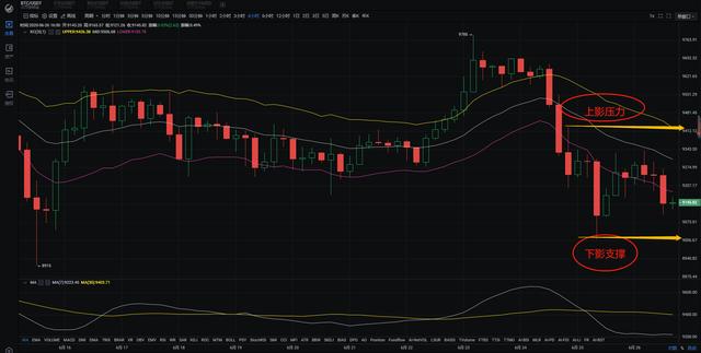行情分析:日线级别可以看到,走势触及BOLL下轨收出带长下影线的小阴线,这里也刚好再次印证前期杨凯说到的“为什么大饼一直在区间震荡,又没量等等情况,这说明外部肯定有承接力量”!但目前短期杨凯来看均线就别看了都是“盖子”,存在大涨的可能性不大,可能还会收一根长的下影线的K线。1小时级别来看短线可以看做是币价在9100-9450这个区间震荡整理。日内小级别支撑关注9100的箱体下沿,压力位关注9550的箱体上沿。短线来看MACD在零轴附近有粘合可能,KDJ则是死叉向下,短线来看行情同样是偏空头方向。若币价反弹至9300-9350的多空分界线压力位附近可以尝试轻仓做空,9100不破同样可以尝试小多单,短线波段操作。
