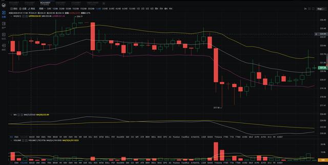223-225附近多,止损221,止盈228-230;