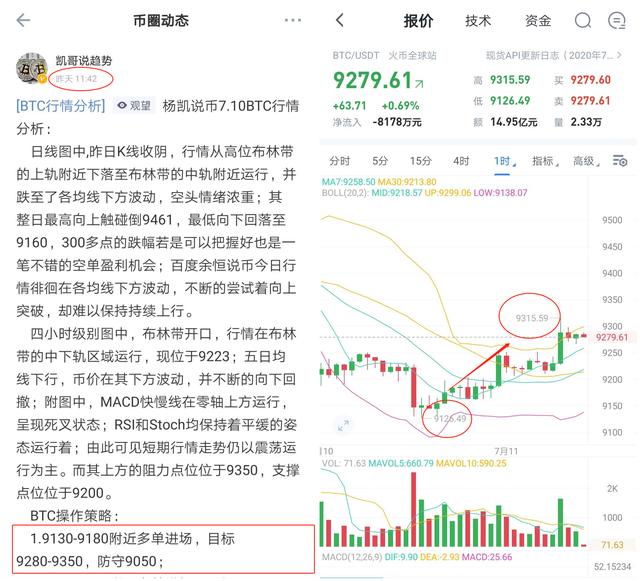 行情回顾:比特币昨日整体波动并不大,上午基本处于横盘盘整中,中午小跌一波,从9230附近跌至9130附近,然后再次处于横盘状态,在9140-9190这个区间内小幅震荡后,晚间开启震荡上扬走势,至今日早间最高点到达9315美元,目前暂报9275美元。昨日早间本人给出的分析中就说过后市会先跌后涨,并给出了9130-9180一线多单策略,至今日早间已盈利180余点,你有跟上策略把握利润吗?