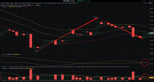 行情分析:日线图中,直到现在昨日和今日行情相比而言,高位和低位均有所抬高,对于BTC整体的走势没有太大的影响,最起码现在来看是这个样子;此时行情正处于回调之中,现已跌至中轨下方波动,空头情绪越发浓重。4小时来看BTC行情从9250附近缓慢回踩9180附近,受下方支撑位强烈支撑,有缓慢回调在9200附近。布林带的走势目前呈现一个向下开口的姿态。BTC后市的走势还是哟啊先关注9200位置支撑有效性,若价格始终不破9200的话,还是有机会再次上行试探布林带中轨位置压制,若无法守住9200一线的支撑,BTC价格预计会下行给到9100附近。