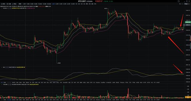 行情分析:BTC今天白天走势与昨天走势非常相似,同样开盘走高,在触碰昨日上行阻力位后再次以小幅震荡下跌为主没有太大的行情,情绪比较温和,市场关注度相对不是很高。四小时级别在试探布林带中轨9350后承压回落,目前收到MA60均线的支撑。周线目前在MA5和MA10两线中间运行。附图中,各项指标均趋于平缓运行,所以短期行情走势以震荡运行为主。小时图K线连续刺破布林上轨后并没有实体站稳,上行短时开始回落,MA5下穿MA10,短期行情走向偏于弱势,但如果晚间不能有所突破,行情将继续陷入窄幅震荡。