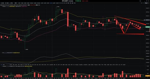 行情分析:日线图上看,比特币价格目前仍是一个区间震荡走势,价格目前在布林带中轨附近徘徊,布林带的走势延续走平姿态,各均线指标目前也是一个横盘整理姿态。比特价格走势短期内预计并不会有太大的变化。4小时图,布林带张开价位处于中轨上方运行,MACD快慢线开口朝上,多头看式很足,RSI从超买区回到正常区走平KDJ在超买区呈死叉向下运行,对应区间在58、67位于正常波动阶段。结合实盘来看,比特窄幅震荡,震荡区间在9180-9230区间,刚刚试探底部反弹,整体行情趋势偏空下行,持续多日区间震荡,市场波动过于稳定,行情或将出现单边走势。