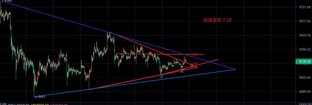 俞泽言币:2020.7.20 BTC重回大三角,多头暂胜一筹