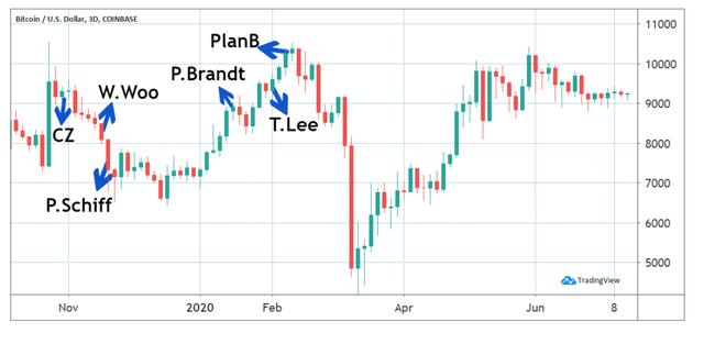 自从 2017 年比特币(BTC)价格上涨至 19,000 美元+ 以来,加密货币分析师就下一个历史高点或低点的日期和价格,发布了无数价格预测。有些预测基于深入的基础和技术分析,而其他的,你可以看成信口开河。许多分析师夸大其词,来引起媒体的关注,他们的预测甚至基于各种偏见。普通投资者,应该问的问题是——这些预估与比特币期权定价相比,到底相差多远?此外,应该该考虑这些分析师和专家的意见吗?