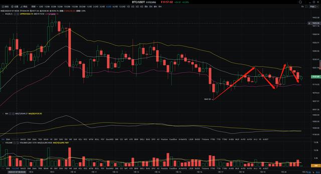 行情回顾:昨日比特币插针9100在凌晨反弹向上插针9170后开始震荡上行,早间七点再次冲高9230这三波拉盘都是在5分钟的一根K线内完成,多头主力高度拉盘!这几天的行情波动比较慢给出的操作策略都是在我们的布局范围内,目前多头间歇性拉盘两次后比特币4小时周期以下全部由空转多,那么今日整体思路以反弹做多节奏来看!