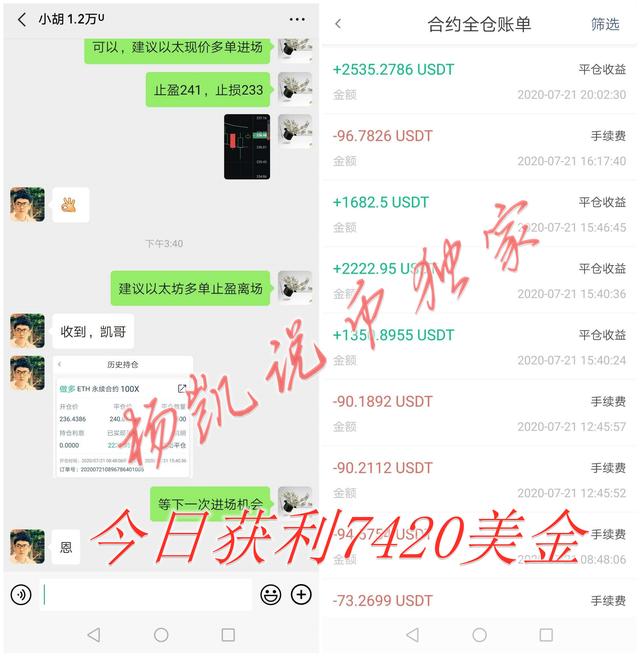 这个市场上从来都不缺赚到钱的人,7月初跟上杨凯团队操作的币友,以1.2万美金的仓位今日获利7420美金,累计收益4.5万美金,出金2万美金。近期每天区间震荡都是小波动了。我们说,有波动空间才有交易机会,有交易机会才会有盈利的机会。不要轮到到没行情的时候怪市场不给机会,有行情的时候畏畏缩缩讲稳健要观望!