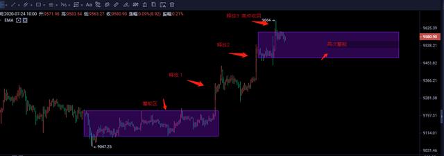 从9220-9664 中间440个点的拉升,俞泽认为已经将之前的震荡所蓄势的能量耗尽,进一步的上涨需要在9220-9450之间震荡,让更多的筹码进场来达到蓄能的目的。