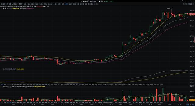 ETH:DeFi效应对币价起到利好支撑的作用,DeFi代币收益下降,持续锁仓ETH,促进ETH连续走高。目前有明显滞涨状态,但这也是正常的,不要一停就看不起以太,现在和太子距离近了,反而是以太的机会。小时线币价筑底反弹,伴随多次插针确定上方330美元一带存在压力,回调等待310美元附近可进场。