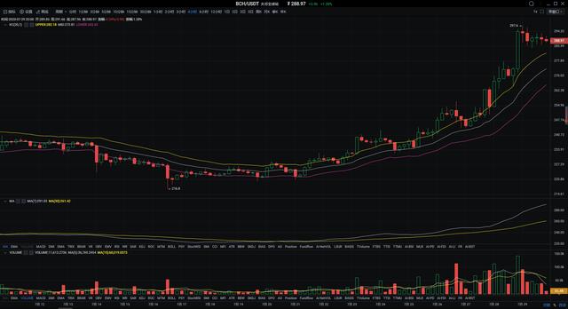 BCH:冲高后回调,但是走势上并没有走坏,目前正是太子补涨的时候,建议286附近做多,行情波动大所以要控制好仓位,点位不能掐的太准的话就要靠仓位来调节,大盘不坏太子今天是有机会的。但是除非太子拉盘,否则破300的可能比较小,有耐心的可以拿一下看后期太子的上冲表现。