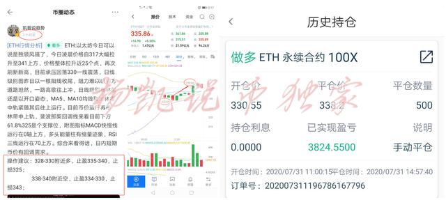 本人今天在实仓学员中给出的330一线的以太多单,也是在338一线成功止盈。思路决定出路,目前还在亏损或者套单的朋友可以找我聊聊。
