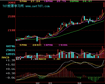 上升两颗星:在上升途中出现小阴线或小阳线以消化获利盘和解套盘,如果次日出现成交量放大的阳线,即可以跟进买入股票,股价必将有一段上涨行情。