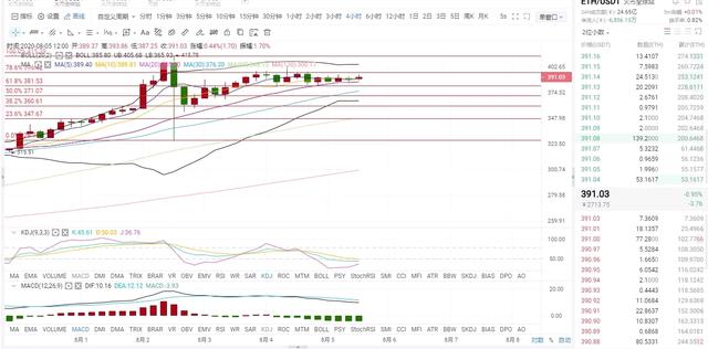 操作建议 394—396附近空单入场 目标384—382 384—382附近多单入场 目标394—396