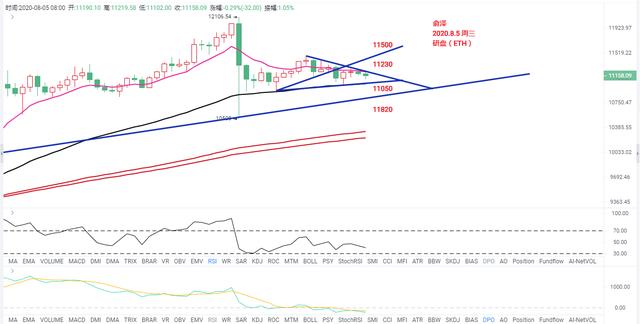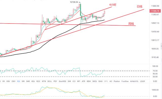 日线:周一 周二 周三 比特币价格都是在回踩11100开始反弹,由此可见11100这个位置支撑很强劲。