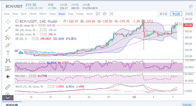 太子(BCH)早间是异军突起,价格是一路上涨,直到价格触及326高点附近上行之势才受阻出现回调。目前价格在320位置附近运行,行情处于高位震荡,后续有上行的可能,所以操作上建议多单为主。上方阻力关注326,下方支撑关注317。