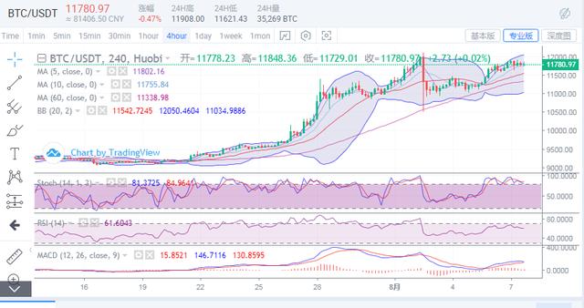 日内比特币向上试探再度受阻回调后,价格触及11700位置附近反弹,目前多空双方在11800一线位置进入震荡节奏,预计短期行情不会出现较大变化,建议不要追涨杀跌。