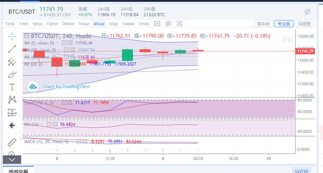 日线图上看,昨日K线是收阴,价格上行止步于11800位置。目前价格上行力度不强,高点并未打破昨日压制,行情开始进入高位震荡,短期来看小贾预计震荡行情还会延续,所以日内切记不要追涨杀跌,把控区间盈利即可。当前价格在五日均线附近运行,比特币大方向依旧看涨,所以不要因为短期的回调,对多头失去的信心。