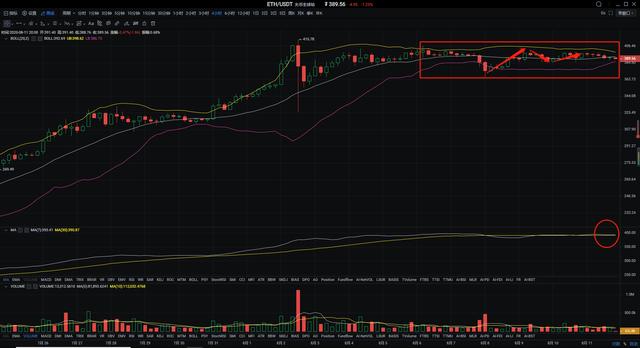 ETH:以太坊近期受400一线压力承压回落,昨日同样是跟随大饼宽幅震荡,下方给到385一线低点,目前价格再次受400压力承压回落,行情继续宽幅震荡,K线的运行趋势中已经不再位于区间上方运行,出现了一定的跟随趋势,对比前期的波动问题而言已经出现了较大程度上的跟随现象,且对应的KDJ指标也有着一定的死叉向下发散趋势,但是较好的是MACD节点问题依旧保持,所以凯哥预测这两天以太的走势要出现一定的变动了,而这也很有可能影响到主流币的市场情绪,所以目前交易时需要时刻留意追高风险问题。