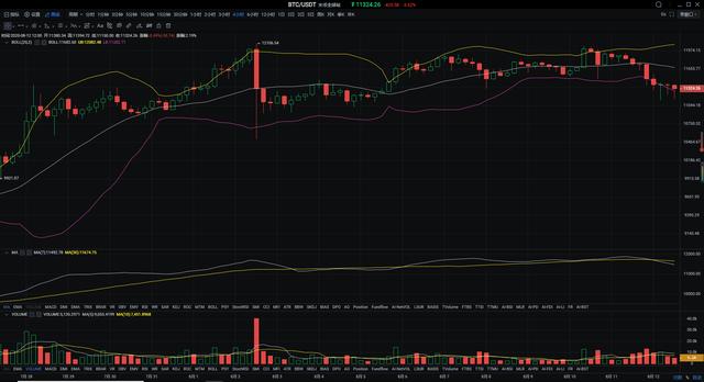 行情回顾:近期的BTC行情一直都是在试探前期高点12000的位置,但是并没有实际性的突破,直到昨日下午空头开始慢慢发力,一直呈阴跌的状态。直到凌晨4点价格最低跌至11100附近,前期11500的支撑已经破位。走出了V型行情,目前的价格在11300附近震荡。