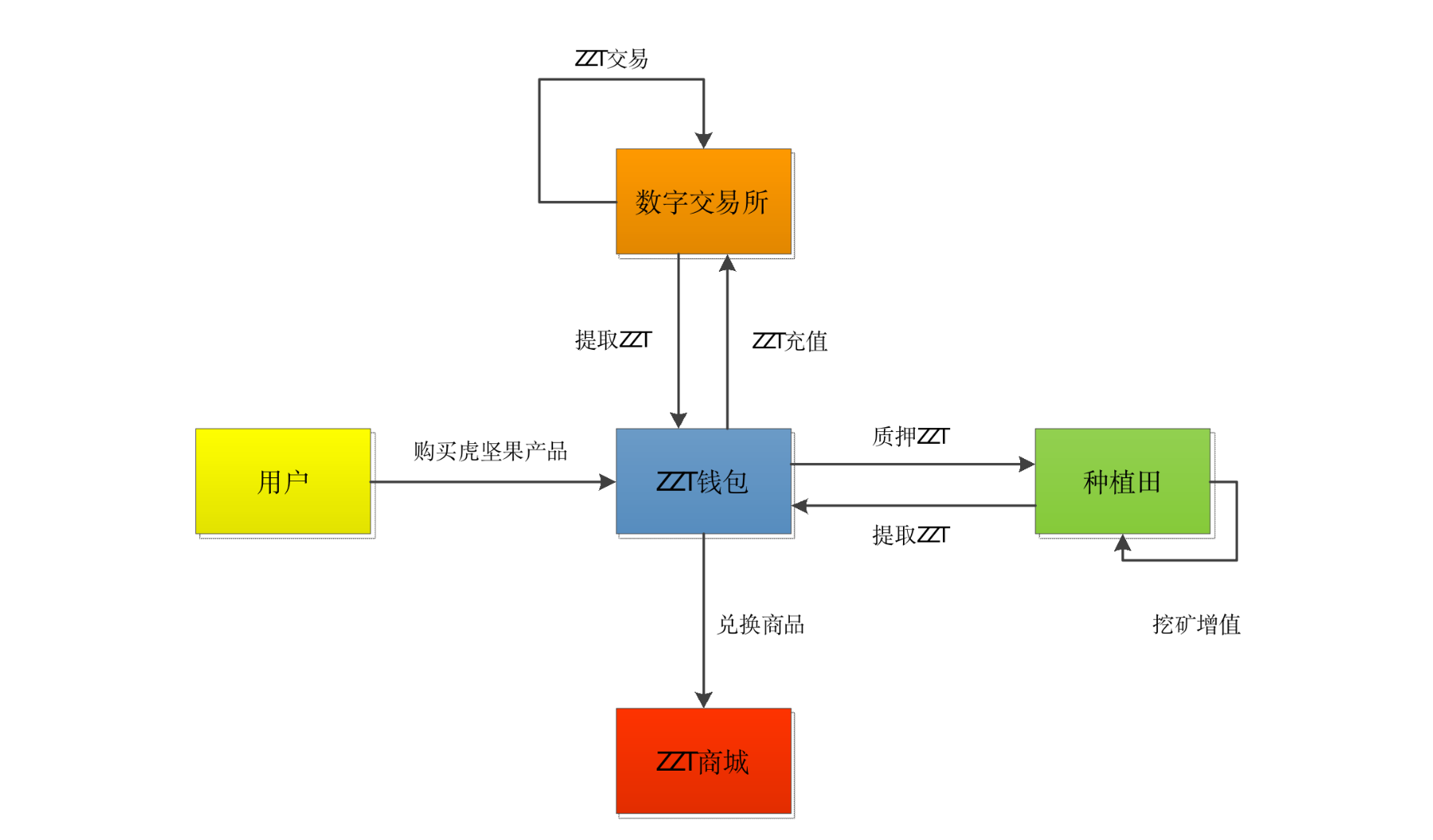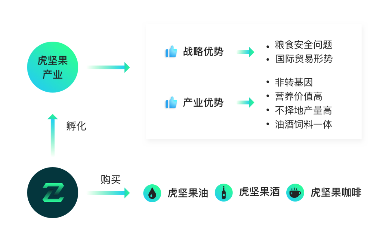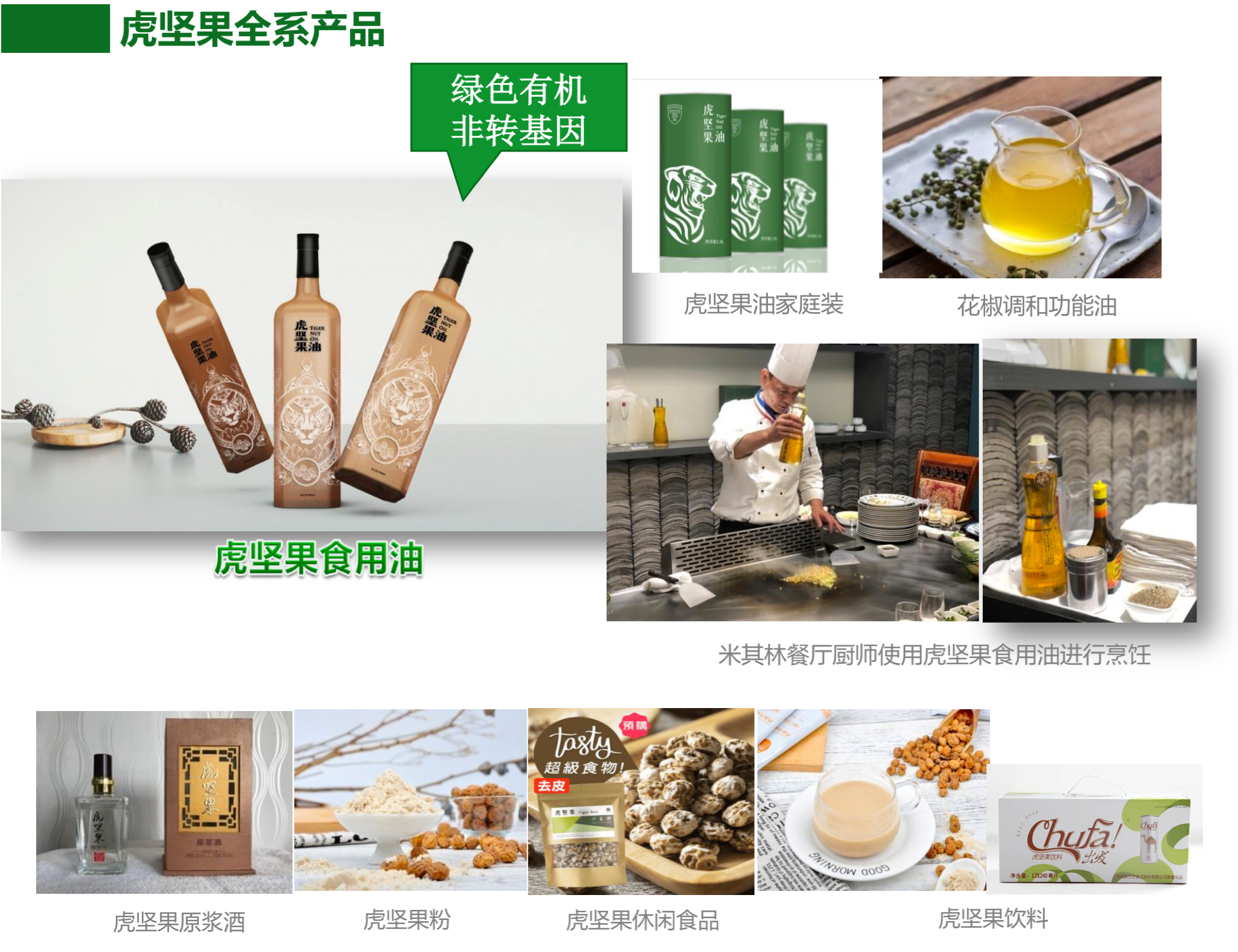 虎坚果全系产品包括虎坚果油、虎坚果酒、虎坚果咖啡等。ZZT持有者可以使用ZZT购买虎坚果全系产品。
