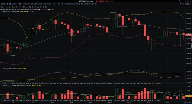 行情分析:比特币午间跳水下探11272位置,其后再次反弹上来,最高点到达11622,再次下跌,目前运行于11470附近。日线图上看,午间的下探也是触及布林带中轨位置支撑后走出反弹,目前短线承压于5日均线与10日均线的粘合处。一小时看布林带呈现向上运行的状态,K线目前处于中轨与上轨之间运行,从幅图来看KDJ三线交叉后翘头向上运行,指标上看MACD快慢线在零轴上方死叉向下,KDJ三线交叉向上,J值在100附近处于短期的一个顶部,RSI三线拐头向上。凯哥认为缩量反弹,上涨的趋势要告一段落,建议晚间高位看空为主。