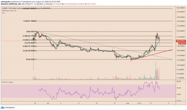 化合物市场(COMP)的疯狂隔夜涨势导致本周四出现大幅回调。