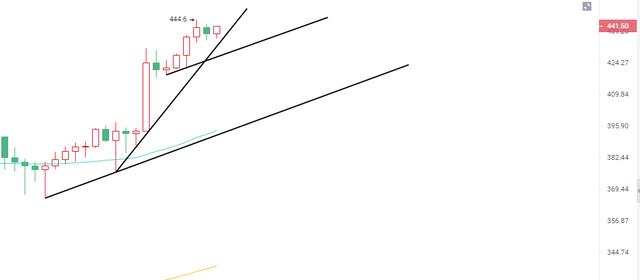 行情分析方面我还是比较参考四小时来做一个分析,至于短线的小时阶段的由于时间的移动,可能方向变得比较快,四小时方面的分析比较简洁!一线定乾坤,大家可以看到在比特币在8.11晚上有效突破这根线以后,前半段的支撑在后半段已经变成了压力位!